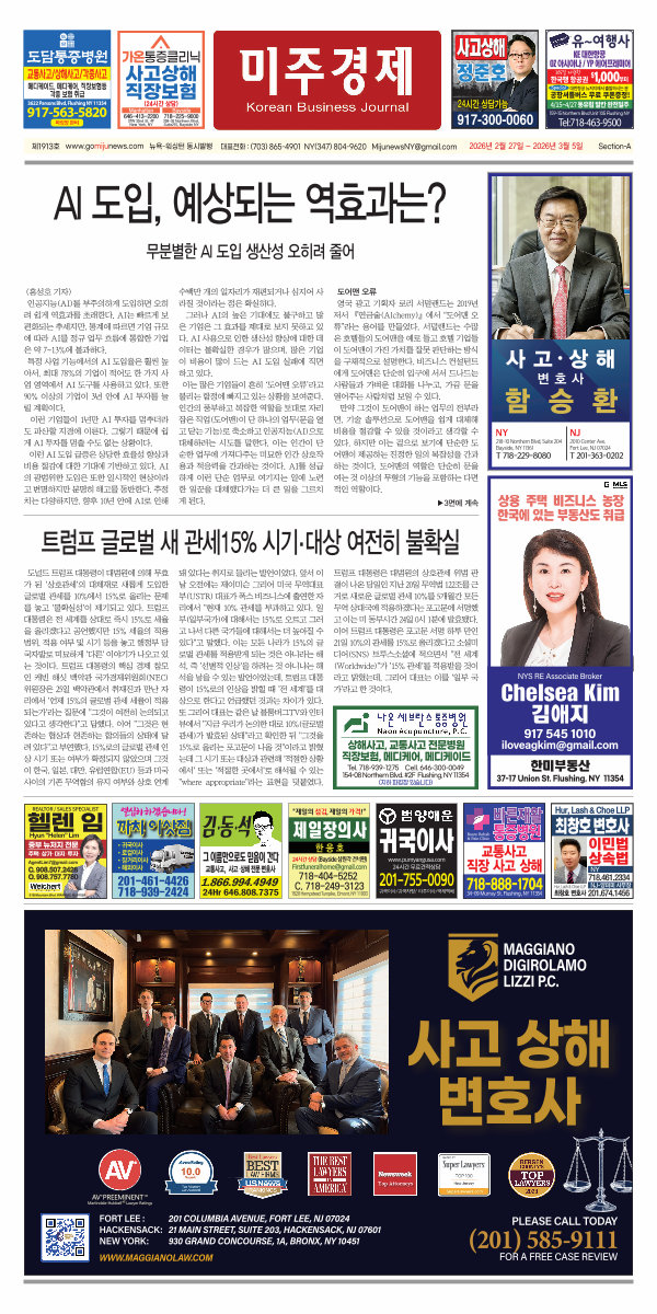 제1913호 www. gomijunews. com 뉴욕-워싱턴 동시발행 대표전화:( 703) 865-4901 NY( 347) 804-9620 MijunewsNY @ gmail. com 2026년 2월 27일- 2026년 3월 5일 Section-A