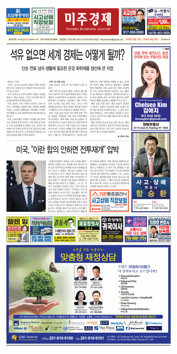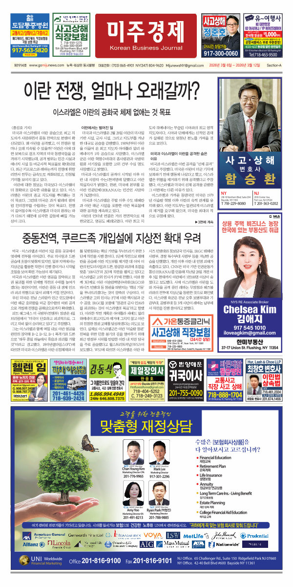 제1914호 www. gomijunews. com 뉴욕-워싱턴 동시발행 대표전화:( 703) 865-4901 NY( 347) 804-9620 MijunewsNY @ gmail. com 2026년 3월 6일- 2026년 3월 12일 Section-A