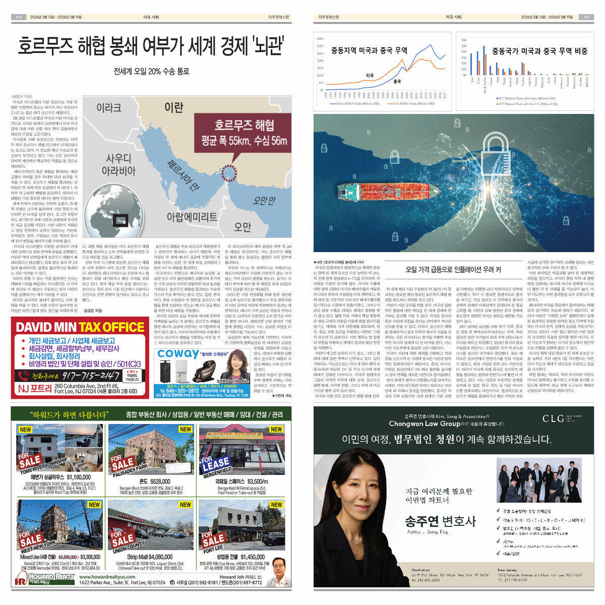 < 최민기 기자 > 미국과 이스라엘의 이란 침공으로 가장 위 험한 지정학적 장소는 육지가 아닌 유조선이 드나드는 좁은 바다 호르무즈 해협이다. 2월 28일 이스라엘과 미국의 이란 미사일 공 격으로 시작된 분쟁이 오만만에서 미국 미사 일에 의해 이란 군함 여러 척이 침몰하면서 해상의 긴장을 고조시켰다. 미사일에 의해 유조선으로 추정되는 선박 두 척이 호르무즈 해협 인근에서 피격되었다 는 보고도 있어, 이 중요한 해상 수송로의 중 요성이 부각되고 있다. 이는 모든 당사자의 전략적 계산에서 핵심적인 역할을 할 것으로 예상된다.
